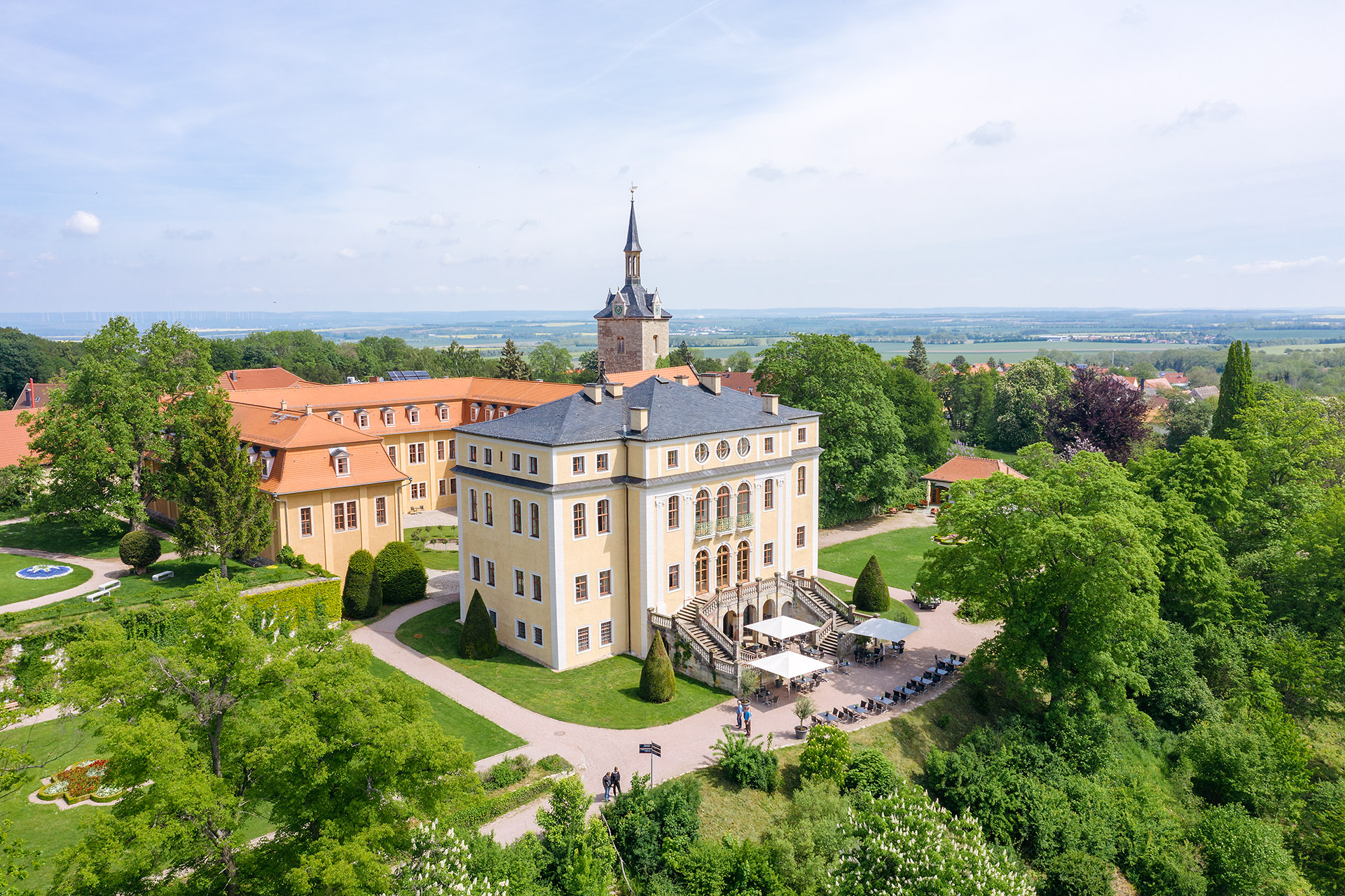 Vlakbij het Romeinse huis in het park aan de Ilm is er een zichtas naar het kasteel en het Park Belvedere. Beide parken verwijzen naar elkaar en zijn ook qua ontstaan vergelijkbaar. Hertogin Anna-Amalia liet het symmetrische barokke complex rond het jachtslot omvormen tot een Engels landschapspark.